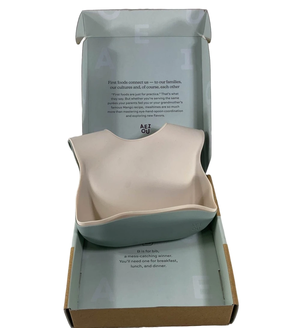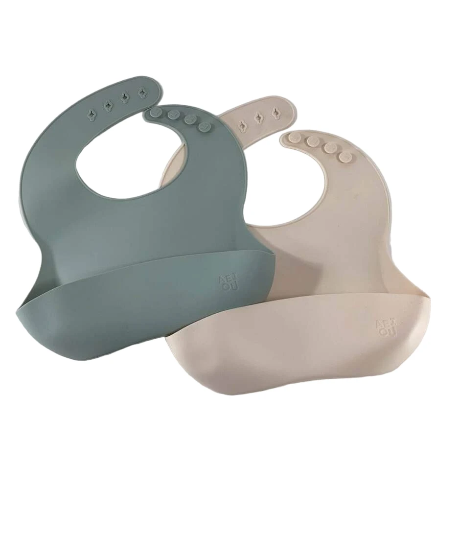 “Keep your child free from messes while eating with these silicone bibs with food catcher pocket.”